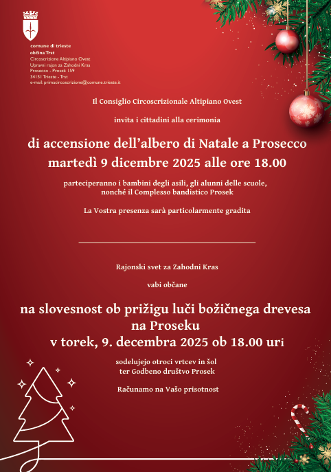 Il Consiglio della I Circoscrizione amministrativa (Altipiano Ovest) è convocato, in PRIMA CONVOCAZIONE, alle ore 19.45 del giorno 30 ottobre 2025 nella sede circoscrizionale al n.civ. 159 di Prosecco per trattare il seguente ordine del giorno: